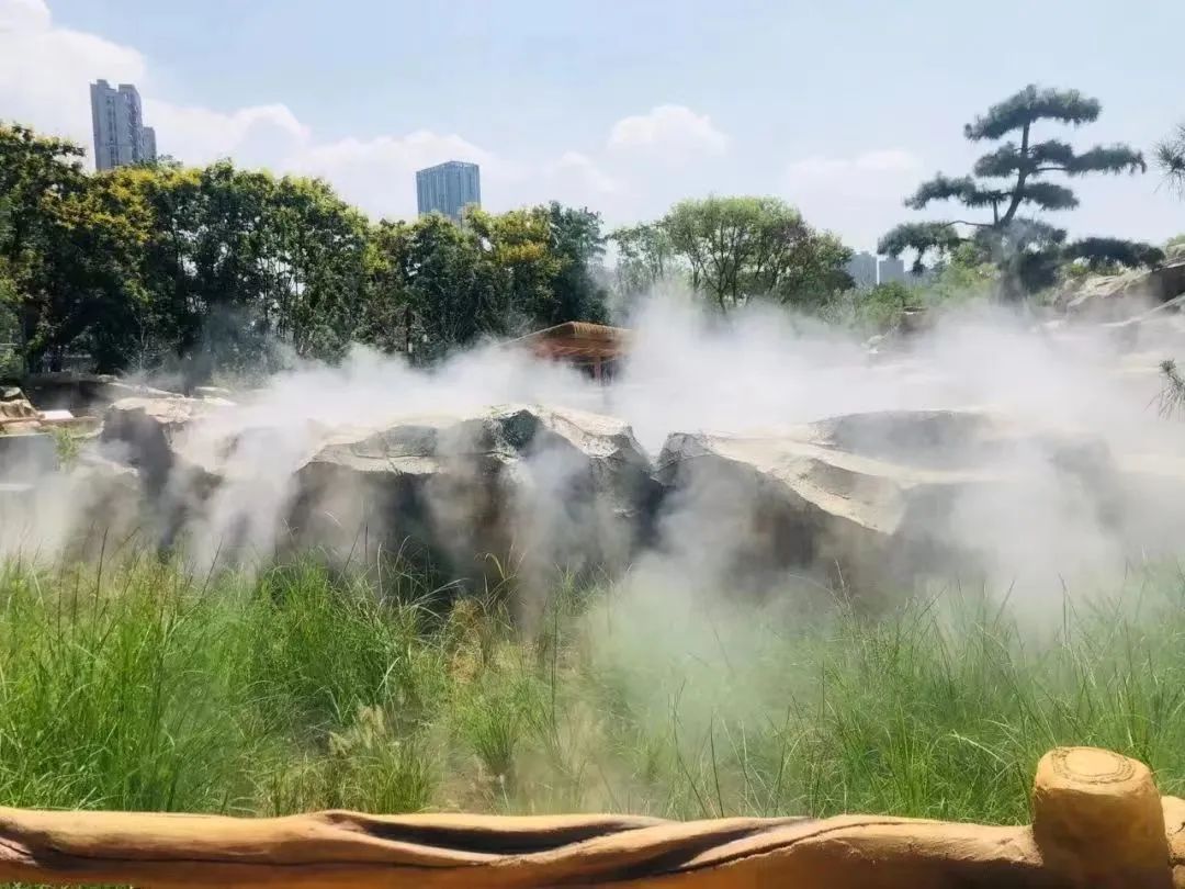 此外,解决方案内的雾森造雾设备也将园区景色渲染得更加神秘、缥缈。雾森设备的应用为动物园塑造了特有的造型及韵味。以略浓的雾掩映了自然堆积状的石形,去除了石多树少而显得过于单调的状态,柔化自然景致。淡淡的雾犹如岩石缝中汩汩流淌的溪流,绿草掩映,小桥流水,朦朦胧胧中感应着自然意境。人造水雾的运用不仅提高了视觉效果,增加了空气湿度,让游客感觉空气凉爽,还有助于景观内花卉植物的生长。