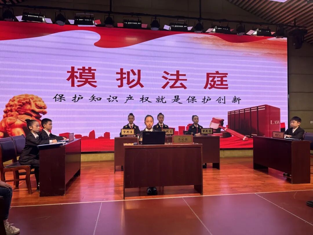 2023年11月,一场“知识产权模拟法庭”在武汉市育才可立小学大报告厅开庭,七一中学学生现场观摩。此次模拟法庭以一起涉嫌销售假冒注册商标的商品罪为蓝本,参与此次庭审的法官、书记员、公诉人、律师、法警、原告等角色均由该校学生“客串”,生动模拟了商标侵权案件的开庭全过程。