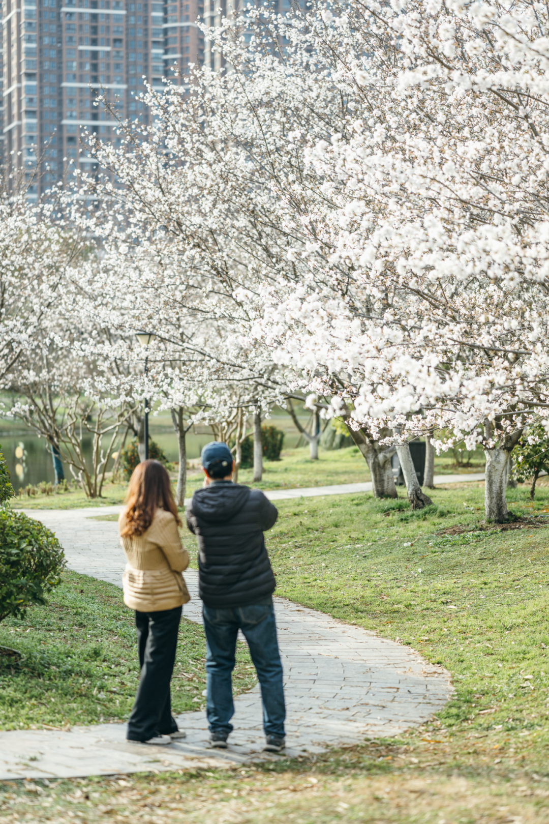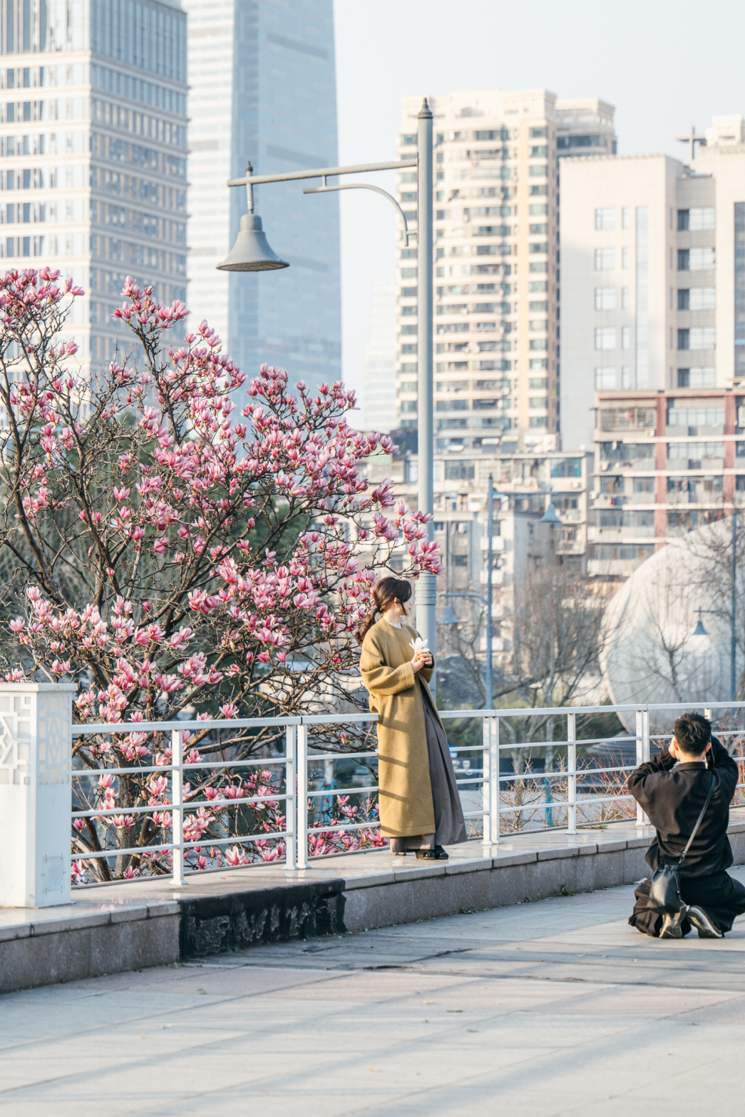 每年3月,江岸便会被一片粉色的花海覆盖。沿江而行,樱花树下人影摇曳,浪漫的气息弥漫在空气中。