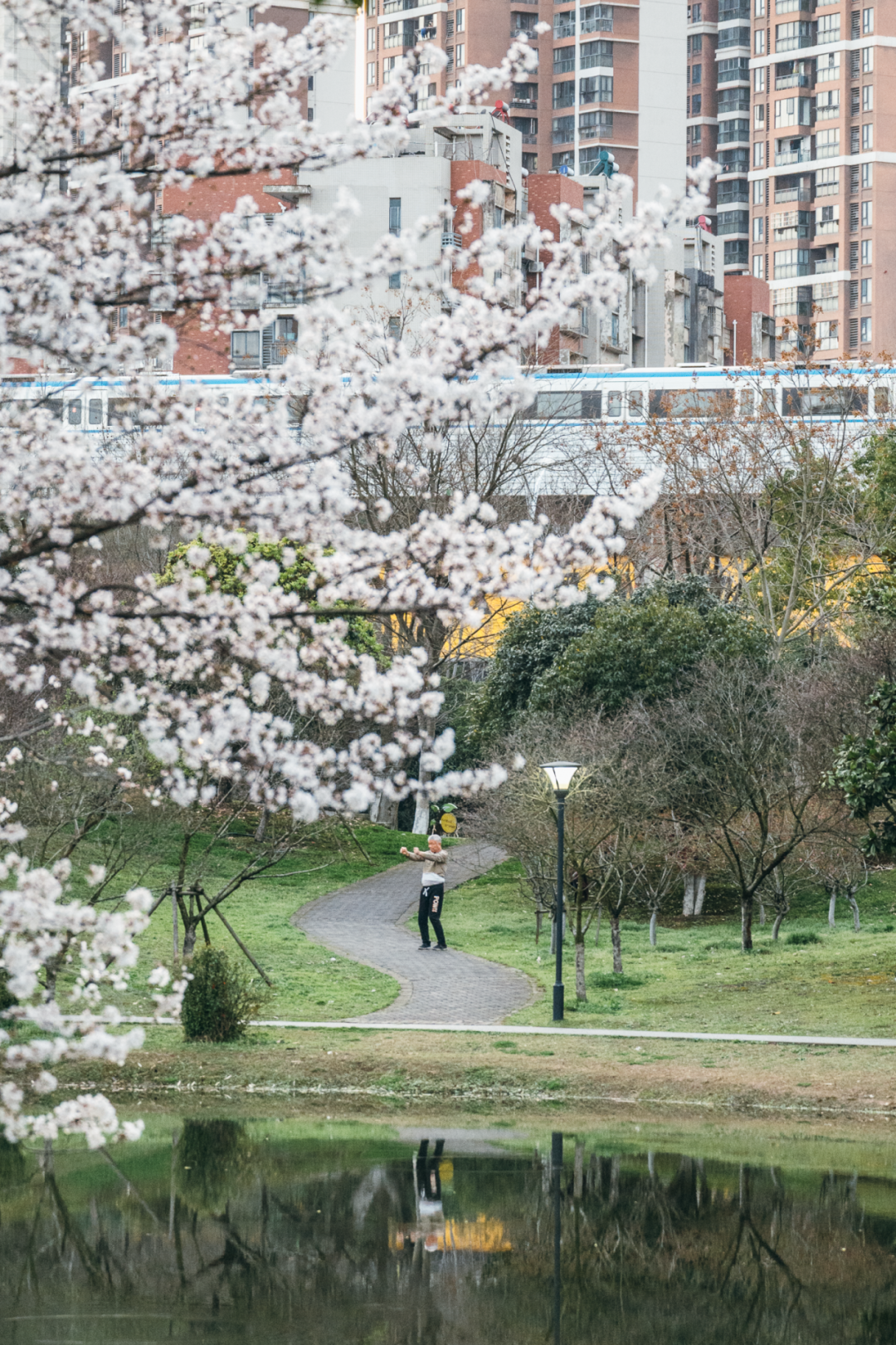 樱花季和汉马的联合,也吸引了更多人在休息日和汉马一起出发,走上街头,走进公园,跑向江岸的春天。