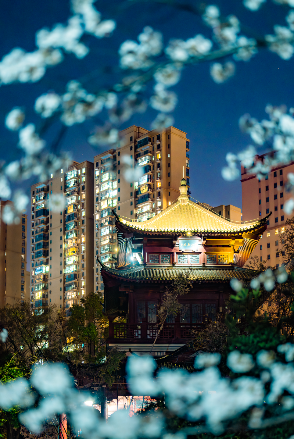 粉嫩的樱花与江南园林风格的古典建筑达成奇妙的默契与和谐。时间在这里放慢了脚步,古韵与花香的相互交织,自然与人文的完美融合,让人忘却了尘世的喧嚣,沉浸在梦幻般的花境中。