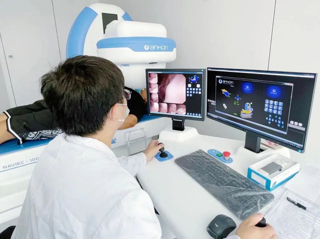 一台外形简洁的“机器人”,像尽职尽责的助手,小巧的手柄握在市八医院消化内镜中心的医生手里,左旋右转,能把影像放大40倍的探头深入患者胃部,即便细如发丝的病灶也能被敏锐捕捉。