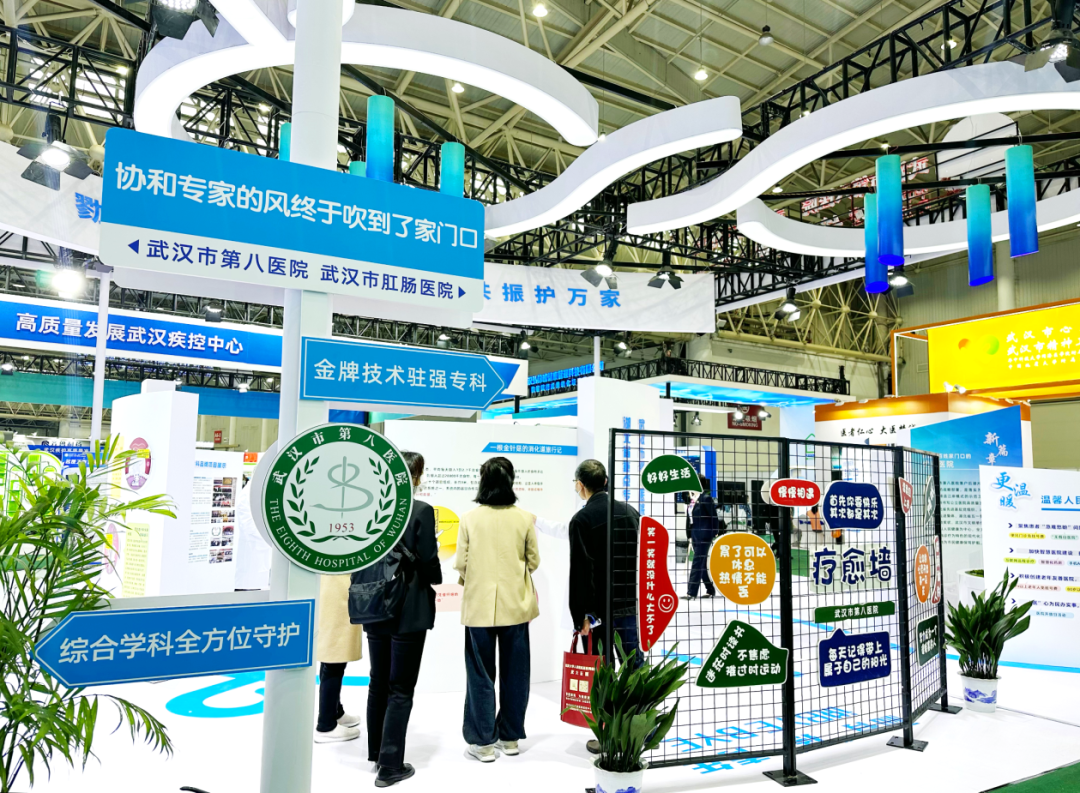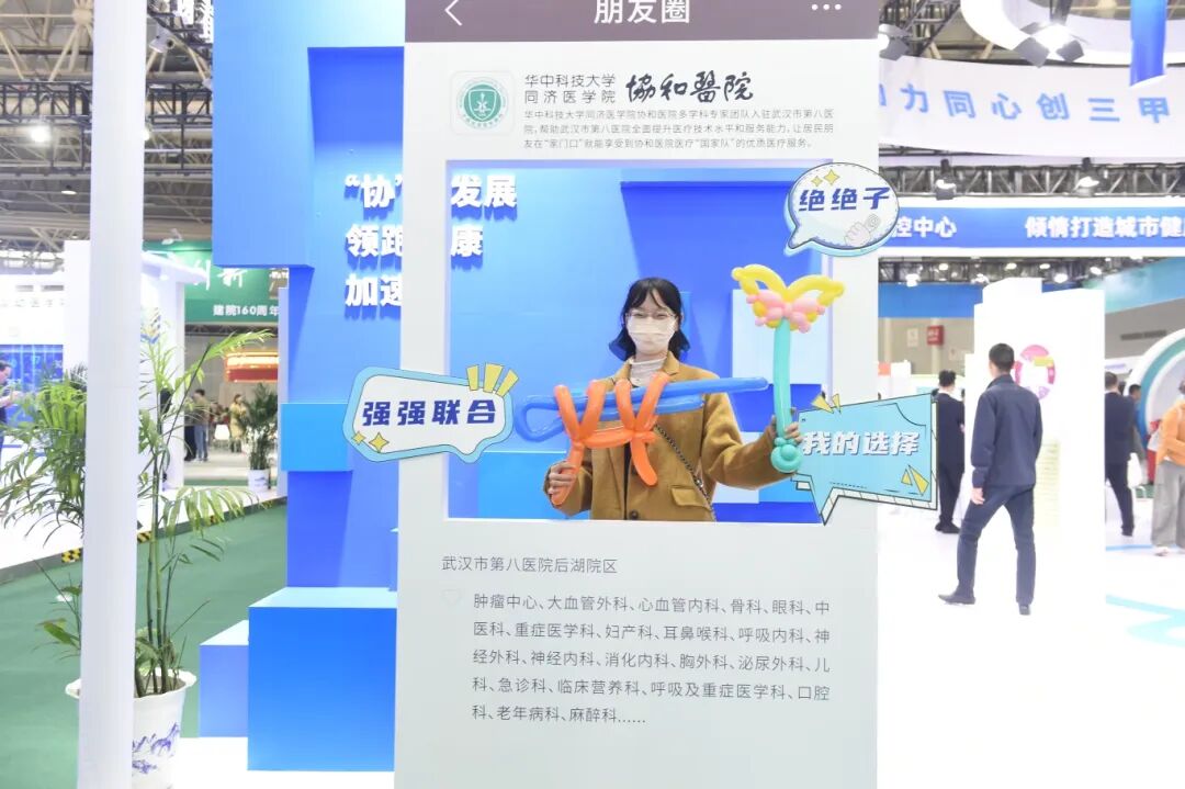 拥有70余年历史的武汉市第八医院(下文简称市八医院)在A4馆T16展位上,精心布置展区,围绕“走进八医”“金牌专科”“协和托管综合发展”“智慧医疗‘医’领未来”“暖心便民公益担当”等主题,全方位展现了医院的综合实力和人文关怀。