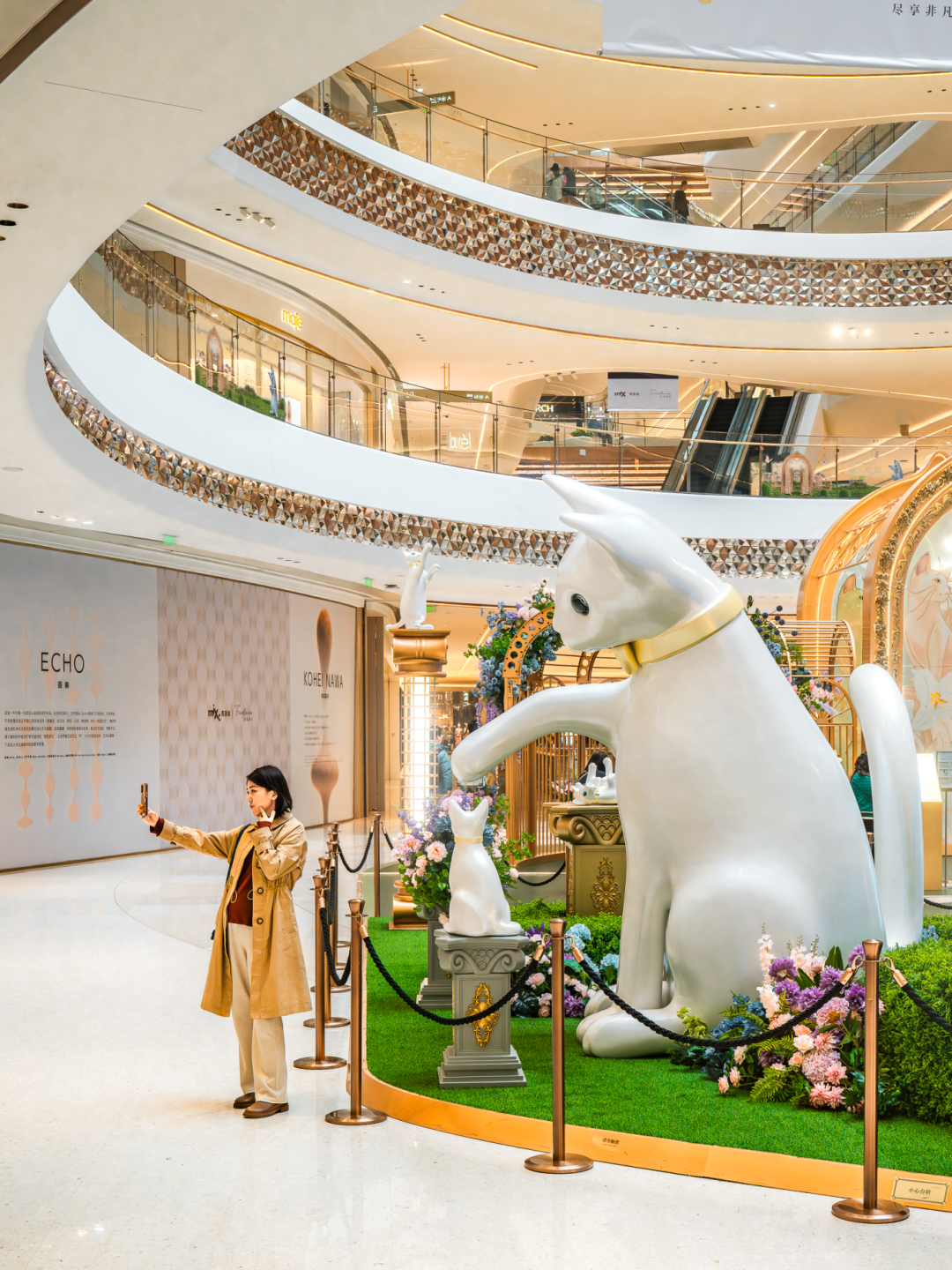 「MIXC GARDEN绮梦之境」在此启幕,巴洛克花园式的装饰让整座万象城摇身成为Queen Misty的奢丽花园,造型各异的Misty猫猫为春天带来惊喜。