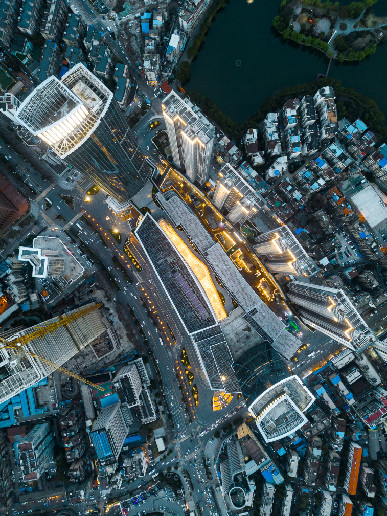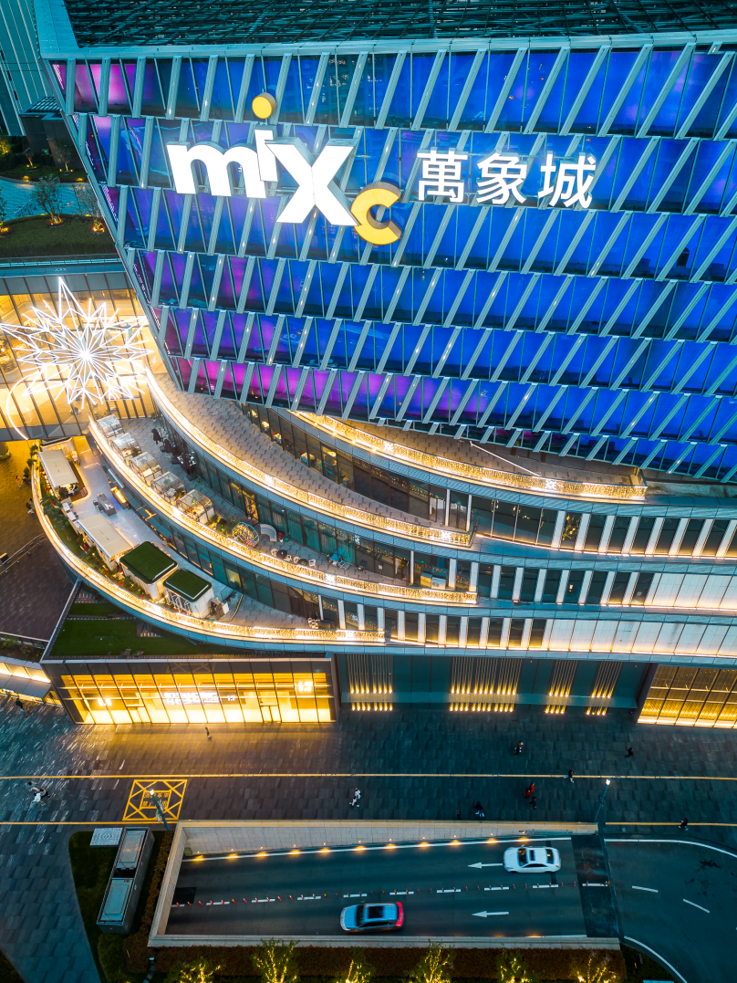 “水晶之冠”透明天幕,光影流动交互感拉满的外立面幕墙,灵动的块状几何拼接组合与灯光设计,让万象城看起来犹如一个放置于城市街头的赛博水晶魔盒,奇幻而明亮,拥有“万象”种开启的可能。