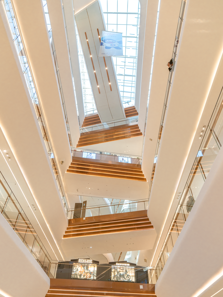 武汉万象城的退台式“梯田”设计,以及开放式街区「漫巷WAVE」带来的“呼吸感”,在繁忙都市中显得尤为可贵。