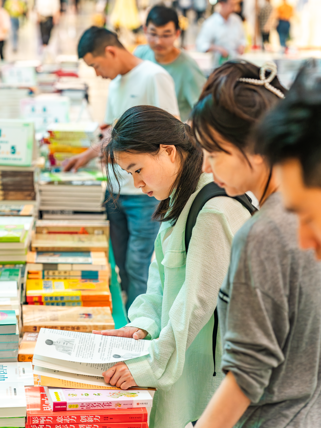 阅读爱好者们在展柜之间穿梭,仔细地挑选着心仪已久的图书,与同伴分享着自己的书单,开启一场愉快的购书体验。