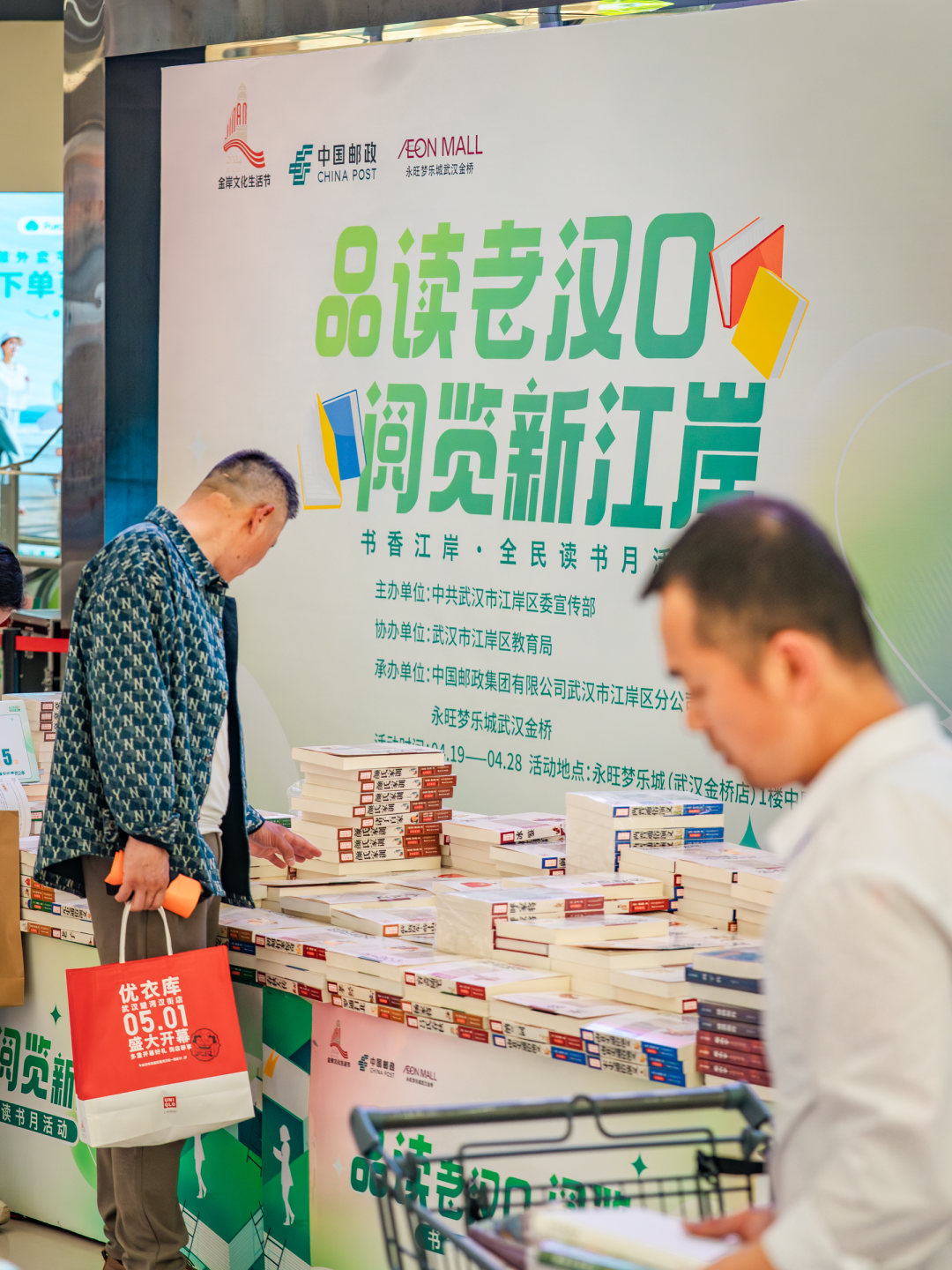 一场以“品读老汉口,阅览新江岸”为主题的书香江岸全民读书月惠民巡展活动正在金桥永旺梦乐城一楼中庭展开。我们每个人都是全民阅读的践行者,“手不释卷,共沐书香”已然成为江岸的阅读新气象。