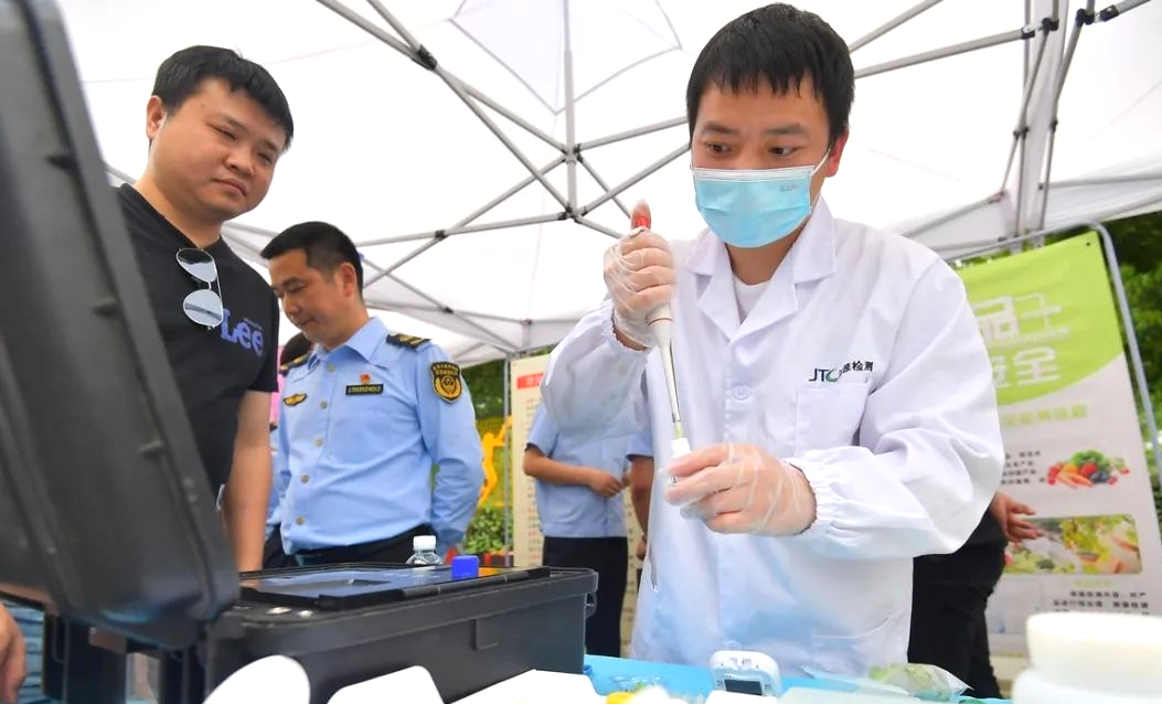 区市场监管局参加“长江日报社区行 共同缔造办实事”暨长江日报创刊75周年读者节活动启动仪式,现场提供消费者权益保护咨询、食用农产品快检和咨询服务。展示利用一体化食品安全快速检测仪,筛选蔬菜、水果、肉类中的农、兽药残留的过程,受到市民欢迎。