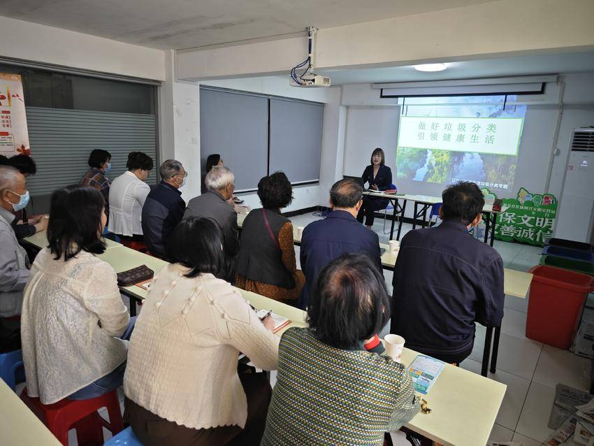 区城管局联合后湖街道新荣社区开展“践行二十大,垃圾分类进社区”江岸之光·新时代文明实践特色理论巡讲活动。江岸环卫众旺物业垃圾分类讲师通过顺口溜,向社区居民介绍垃圾分类的相关知识,并通过知识问答和游戏互动等方式,引导居民了解如何通过垃圾分类实现资源高效利用。