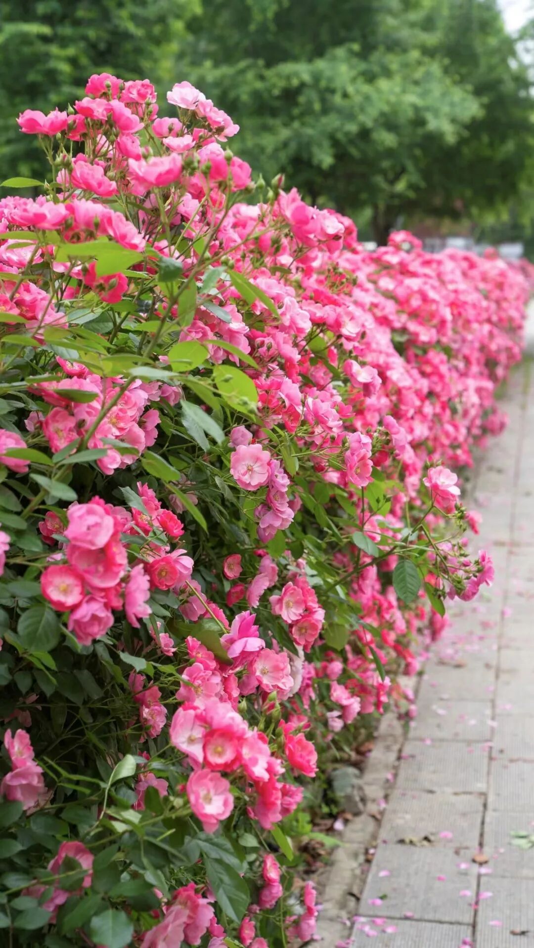在金桥永旺店附近,一簇簇蔷薇娇艳欲滴,爆开一路,肆意绽放,争先恐后的渲染着粉色气息。