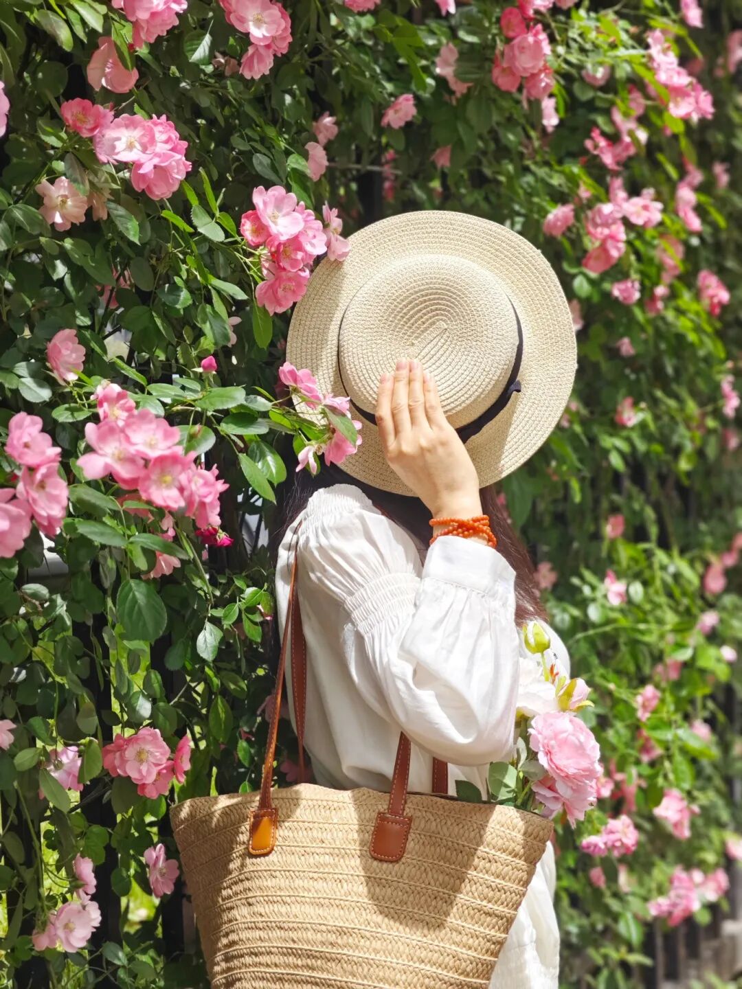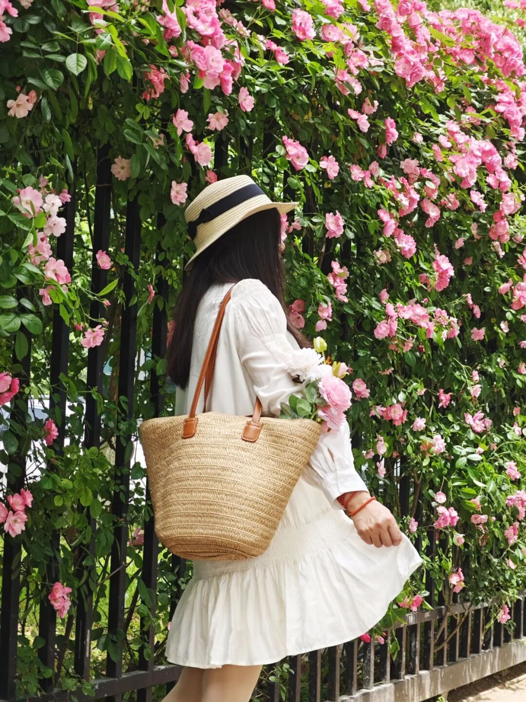 街边栅栏的蔷薇灿烂盛放,一簇簇、一丛丛的蔷薇摇曳生姿,毫不吝啬的向每个过路人说“Hey,hi”。