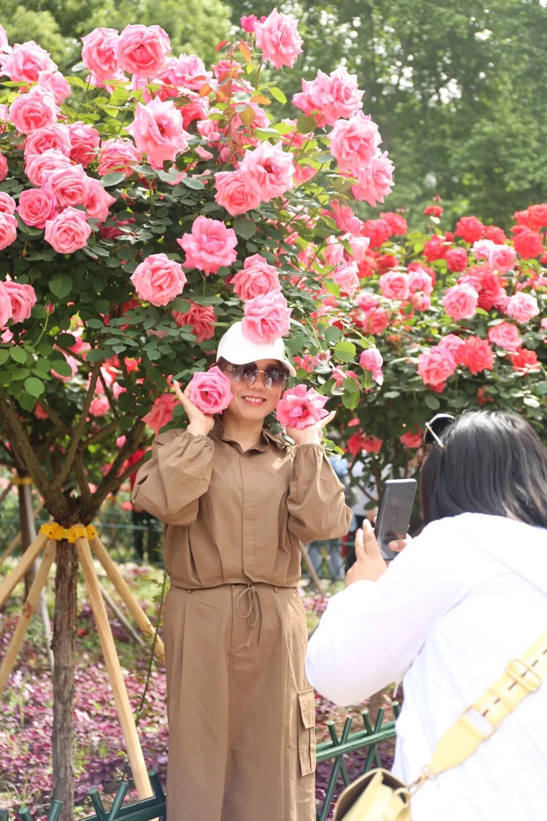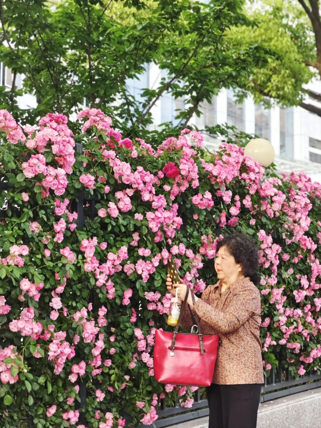解放公园的蔷薇花和月季花也正在上演一场明艳热烈的视觉盛宴。