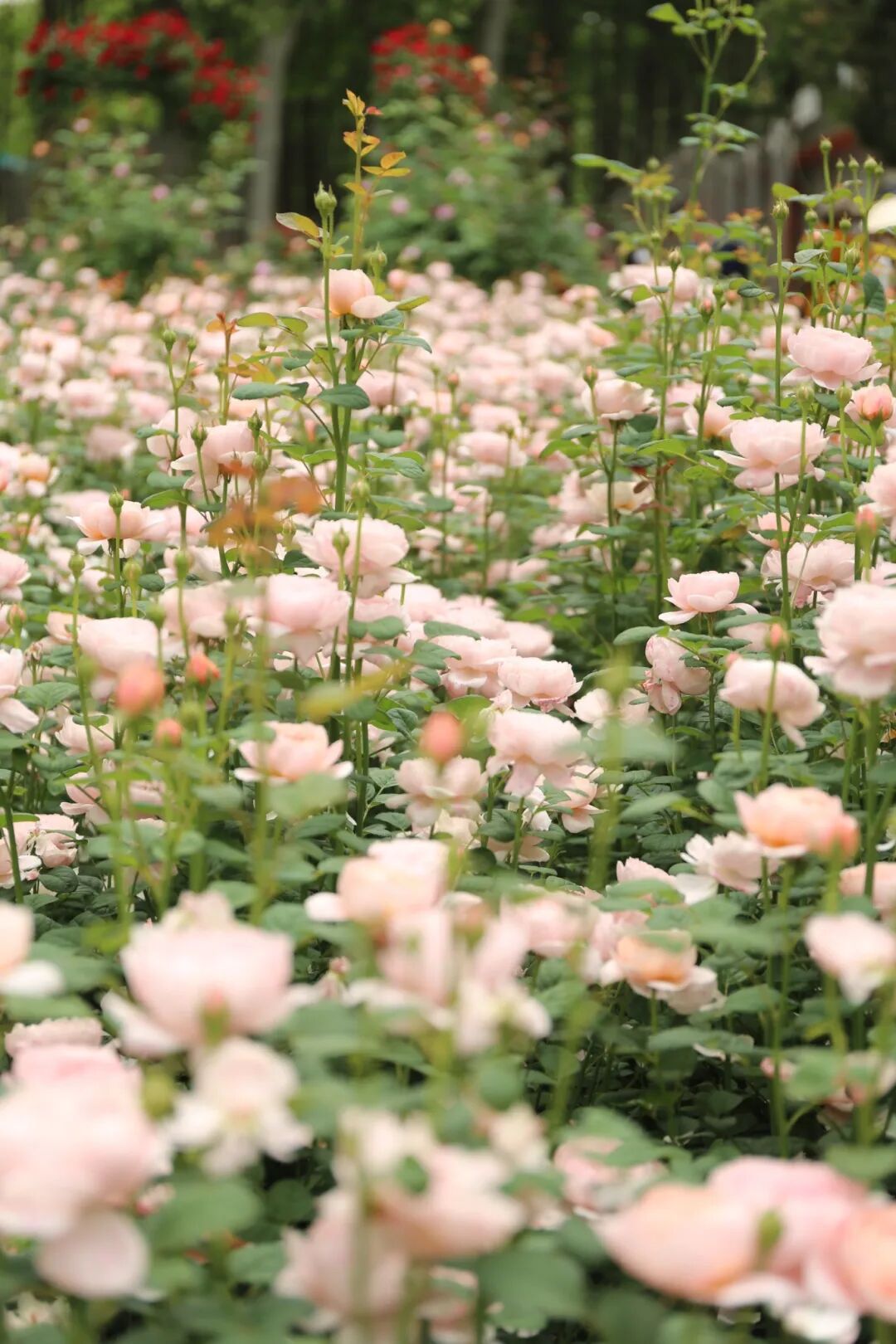2400㎡月季园里,40余种一万多株花,开得如锦如画,生机勃勃。