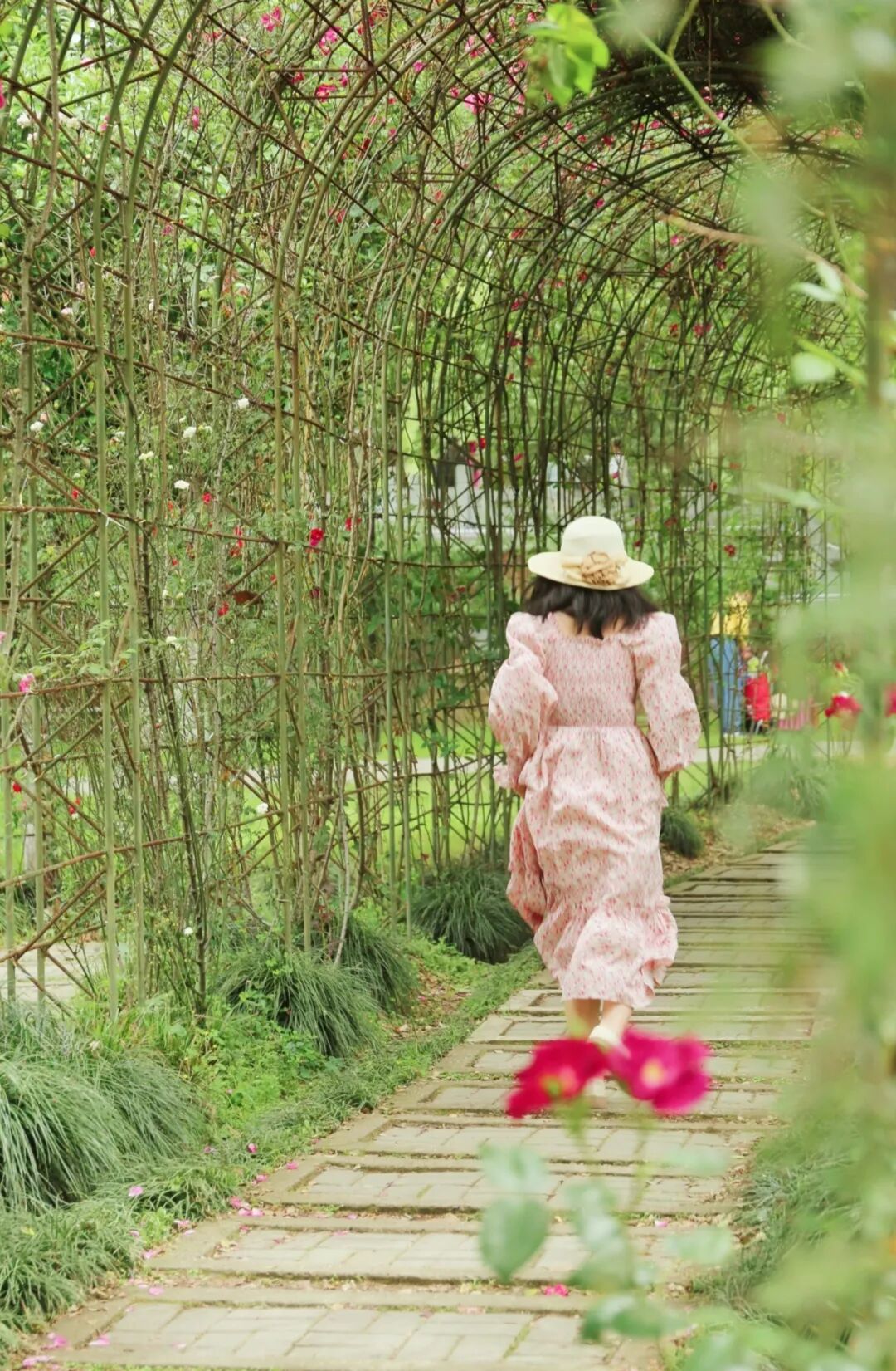 用月季打造出的花廊,仿佛是连接童话与现实的时空隧道,从中穿过去,很有绿野仙踪的感觉。