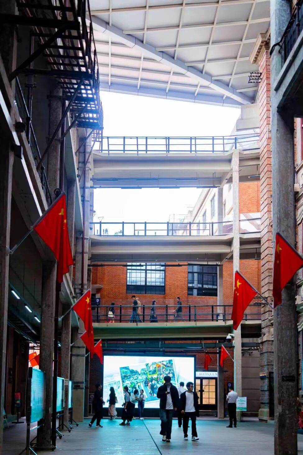铁楼梯上,白领们脚步匆忙;红砖墙内,一行行代码正为科技赋能。