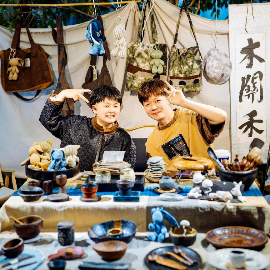 金工饰品、非遗文化、陶瓷、木作、布艺……各类精心创作的特色产品被“小老板们”摆上桌案,等待着客人们挑选。