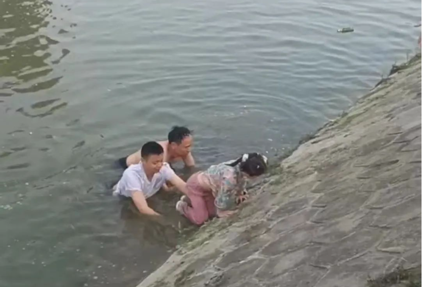 4月13日,四川天府新区锦江生态带,一女孩玩耍时不慎跌落水中,两位热心市民见状,果断下水救援,将小女孩救起后默默离开。
