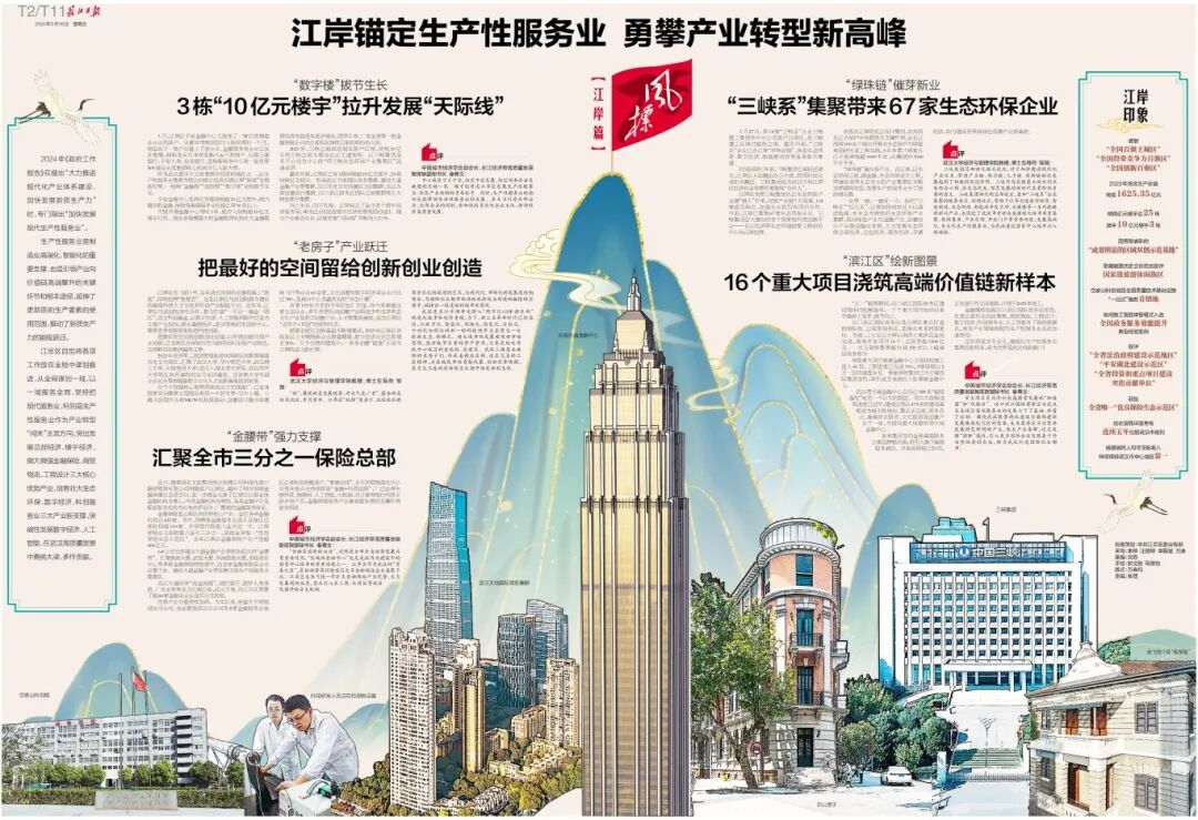 潮涌长江,迎风起舞。长江日报联合中共江岸区委宣传部、全国相关智库机构和专家团队,特别推出《风标75》特刊江岸篇,展示江岸锚定生产性服务业,勇攀产业转型新高峰。