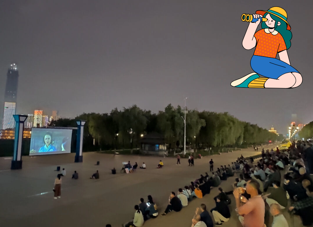 春夏季节,人们把这里当做饭后遛弯的聚集地,吹着飒爽的凉风,依阶梯而坐,看一场记忆中的露天电影,闲谈咵天,回忆旧时光,十分惬意。