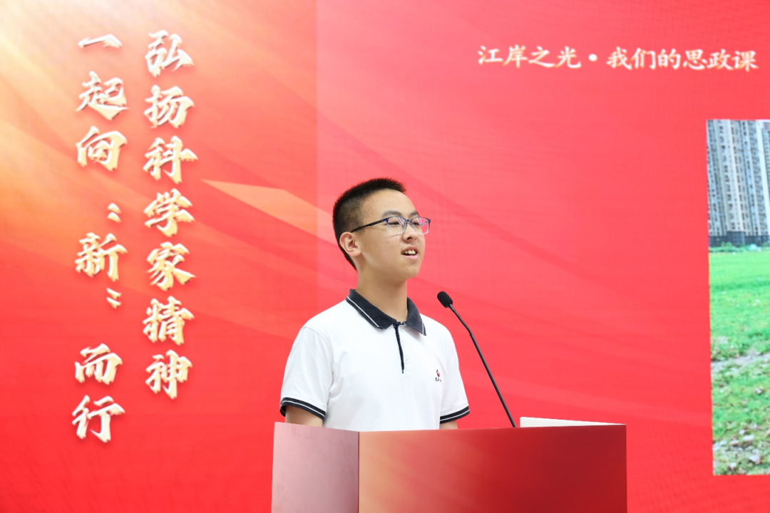 活动最后,特别嘉宾——来自武汉市第二初级中学的思政老师贾玉楠,向在场群众讲述了如何在思政课堂上引导学生培养和践行“科学家精神”。她表示,将在之后的思政教育中,深入学习贯彻习近平对学校思政课建设作出的重要指示精神,以努力培养更多让党放心、爱国奉献、担当民族复兴重任的时代新人为己任,进一步丰富思政课教学内容,讲好新时代故事,引导学生厚植家国情怀、坚定远大理想。