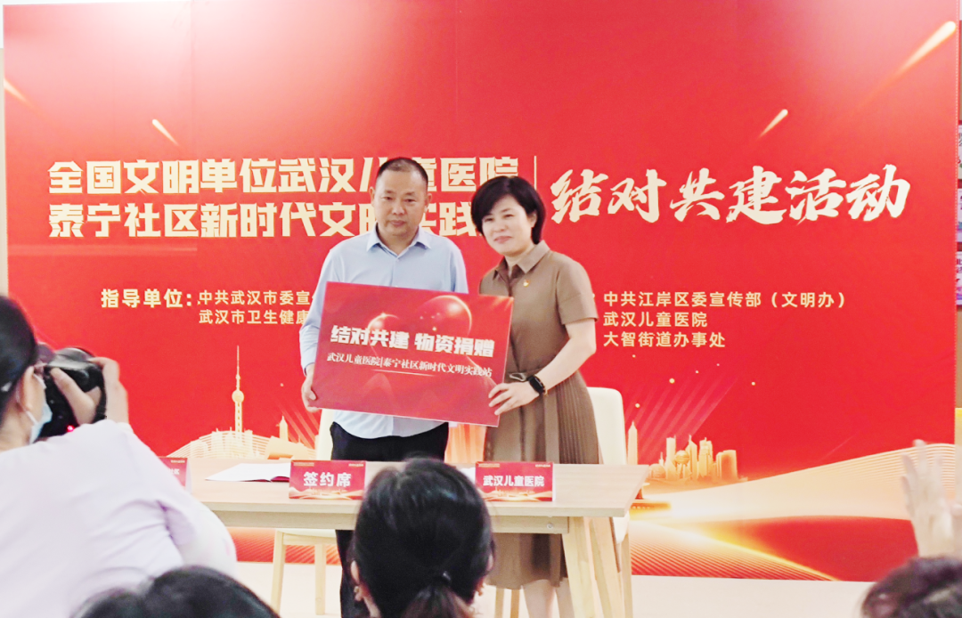 活动伊始,全国文明单位武汉儿童医院与泰宁社区实践站结成对子,举行签约仪式,共建新时代文明实践站。双方表示,在今后的共建活动中,将以社会主义核心价值观为指导,充分发挥新时代文明实践“宣传群众、教育群众、引导群众、服务群众”的作用,形成“共建组织、共抓队伍、共享资源”的文明实践新格局,推动新时代文明实践向纵深发展,让文明之花璀璨绽放。