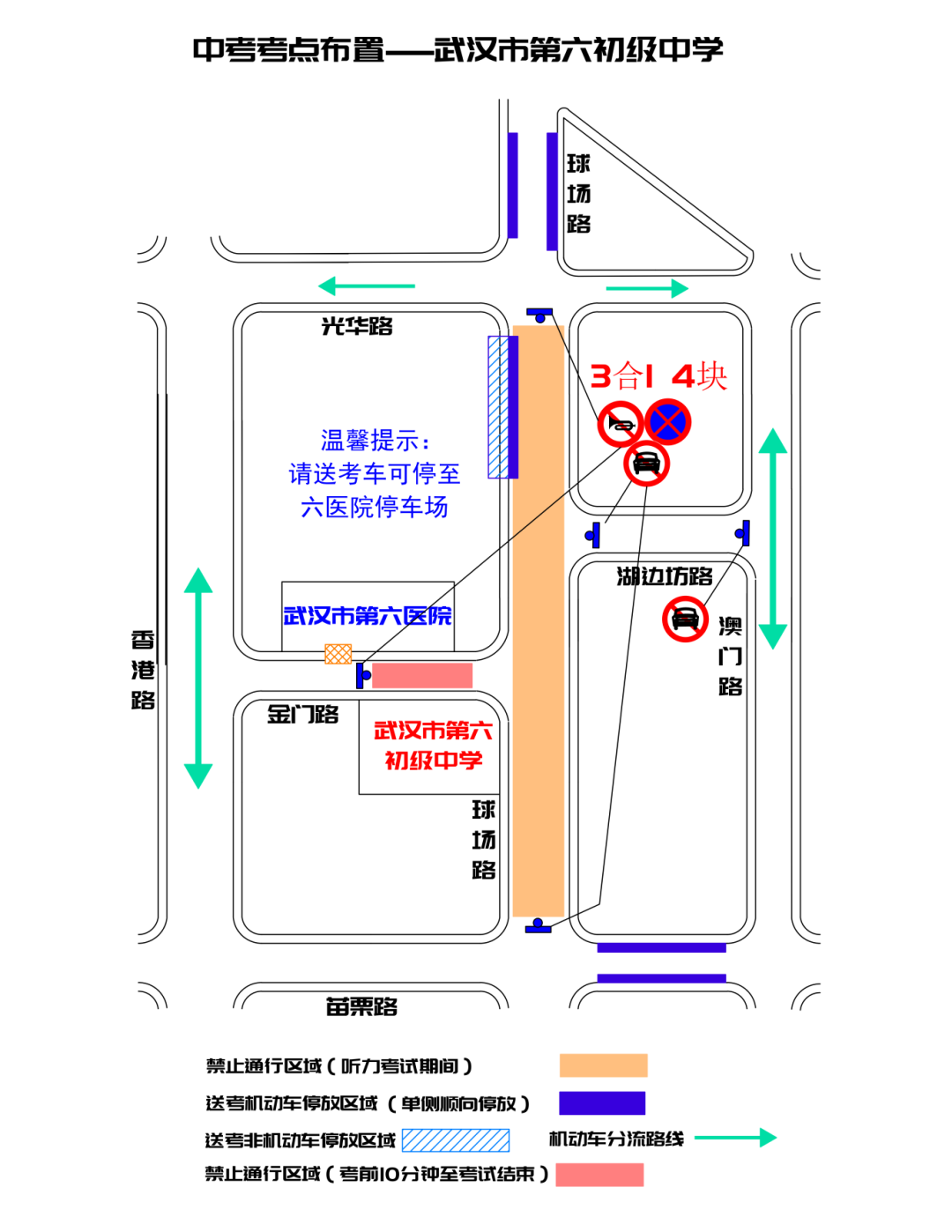 ???? 建议出行路线:金门路(香港路至球场路)每日考前十分钟至考试结束禁止通行;球场路(光华路至苗栗路)听力期间禁止通行,湖边坊路(球场路至澳门路)听力期间禁止通行。