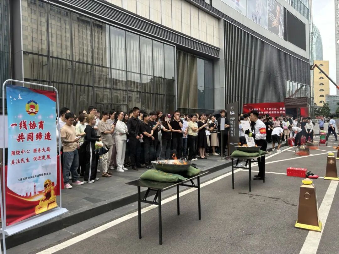 台北街道联合区商务局、区消防大队、武汉万象城共同开展“安全生产月”活动,现场宣传消防安全、燃气安全及禁毒知识,并组织万象城员工开展消防安全逃生演练,随后消防大队和万象城物业一起进行灭火实操演练,还向大家详细介绍了消防器材的使用方法,对扑灭常见初期火灾进行指导,进一步提升大家的消防应急能力。