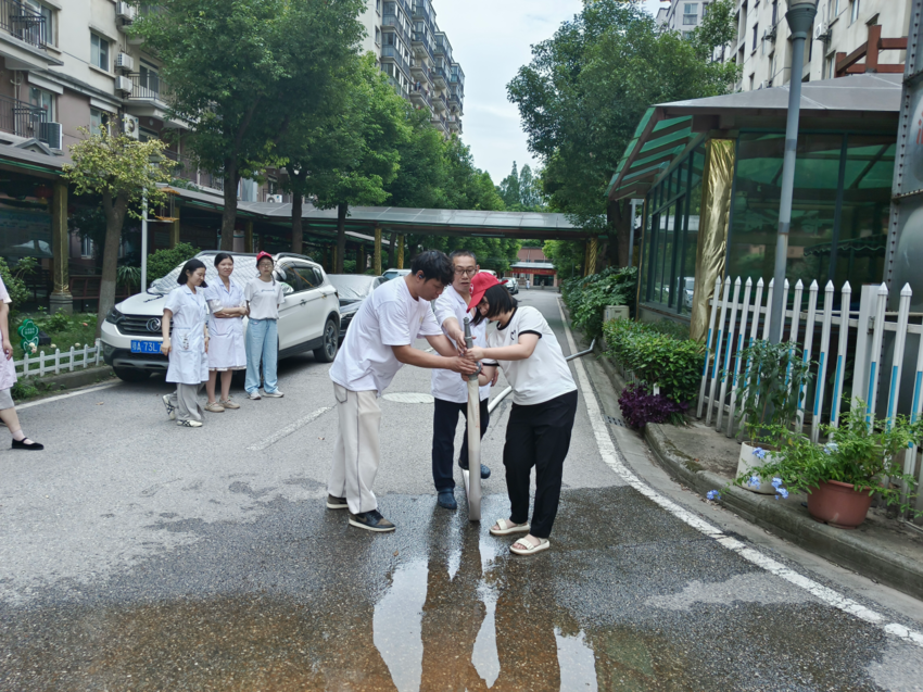 区民政局指导区社会福利院开展消防安全演练行动。院消防安全管理员进行消防栓和灭火器的使用演示,详细讲解每个步骤的操作要点和注意事项,并亲自示范如何正确连接消防栓的喷头、如何放水、如何判断火势以及如何使用灭火器进行灭火等关键技能。随后,职工们现场进行实操练习。活动旨在通过学习和演练,提升职工的消防安全意识和应对能力。