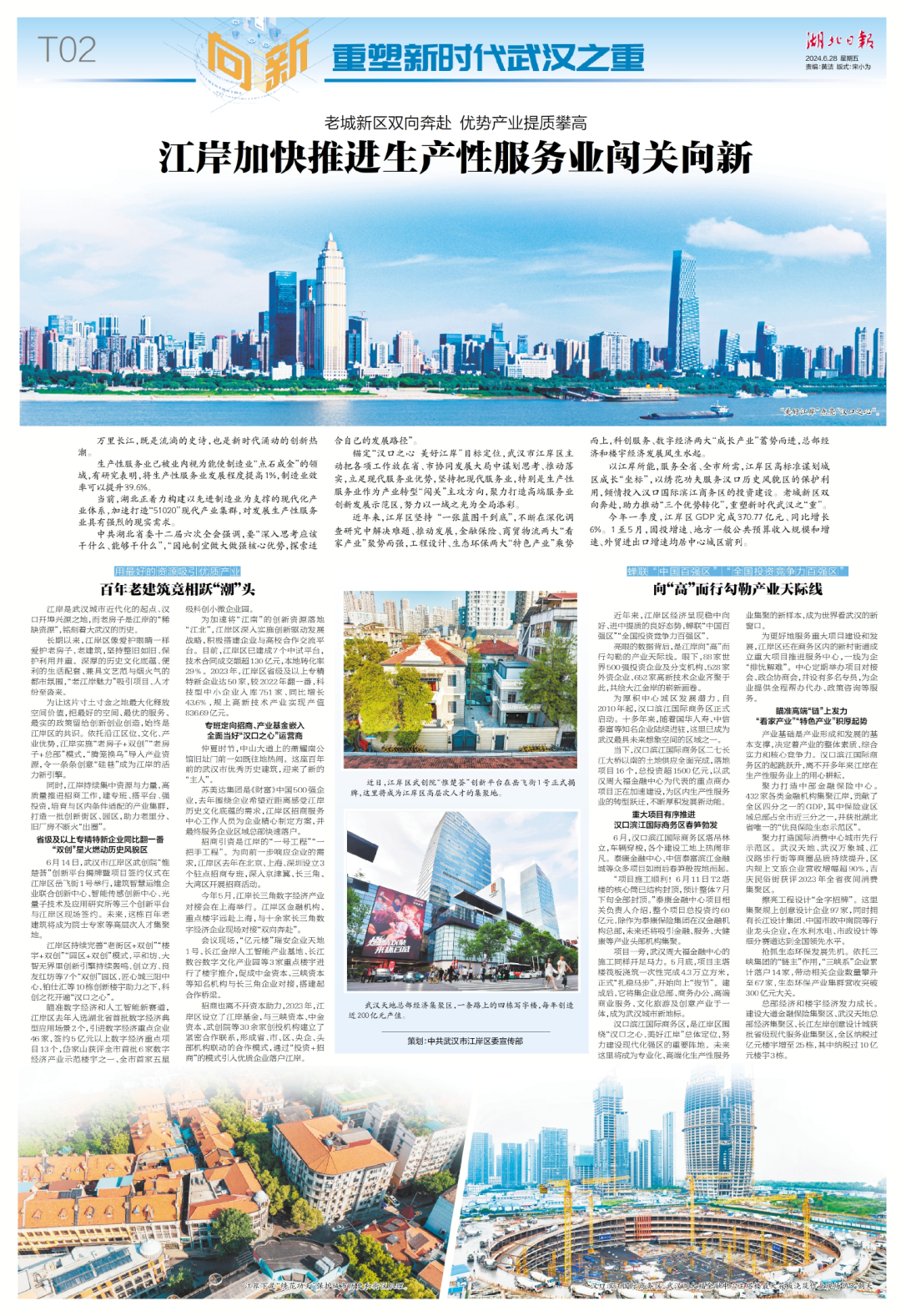 当下,汉口滨江国际商务区二七长江大桥以南的土地供应全面完成,落地项目16个,总投资超1500亿元,以武汉周大福金融中心为代表的重点商办项目正在加速建设,为区内生产性服务业的转型跃迁,不断厚积发展新动能。