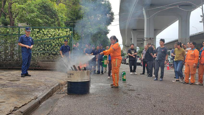 区城管局指导区环卫集团开展模拟应急演练和安全知识培训活动。在消防教官的指导下,环卫人员用灭火器对现场模拟火点依次进行扑灭演习,了解应急逃生常识和灭火器的正确使用方法。危化品操作专业讲师向环卫职工开展危化品操作培训,针对环卫作业中常见的84消毒液、漂白粉、除臭剂等危化品,详细讲解其安全操作规范、注意事项以及应急处理措施。