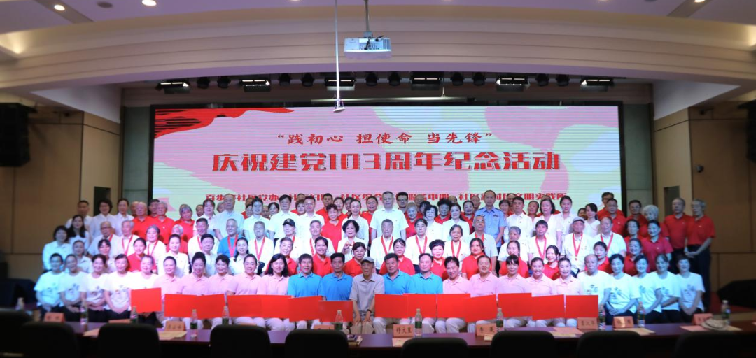 西马街道江汉北路社区开展庆祝中国共产党成立103周年暨“矢志不渝跟党走 凝心聚力绘新篇”活动。通过社区书记讲党课、颁发“光荣在党50年”纪念章、组织开展文艺演出、开展居民服务及上门慰问等形式,丰富党员群众的文化思想教育,引导居民群众主动参与社区治理和社区建设。