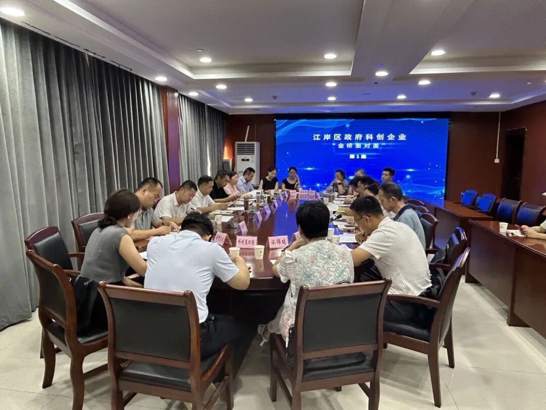 区经科局组织召开江岸区“金桥面对面”——江岸区科创企业座谈会活动。辖区15家专精特新企业、高新技术企业、科技型中小企业分别就企业经营情况、存在的困难和问题、对江岸区科技创新的意见和建议进行发言,政企合力助力经济高质量发展。