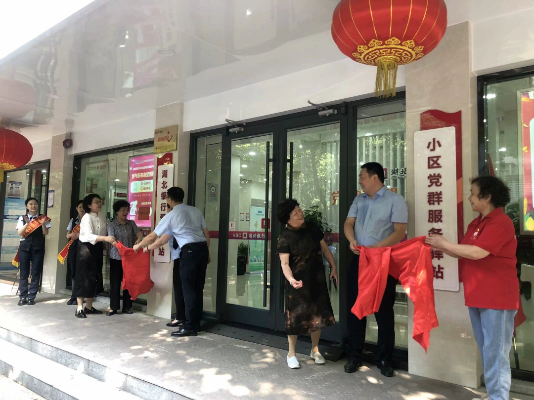 百步亭社区温馨苑党总支与辖区单位协商共建的“小区党群服务驿站”正式揭牌。配备电冰箱、微波炉、饮水机、医务箱等便民物资,设置阅读角,可供户外工作者和居民歇脚。