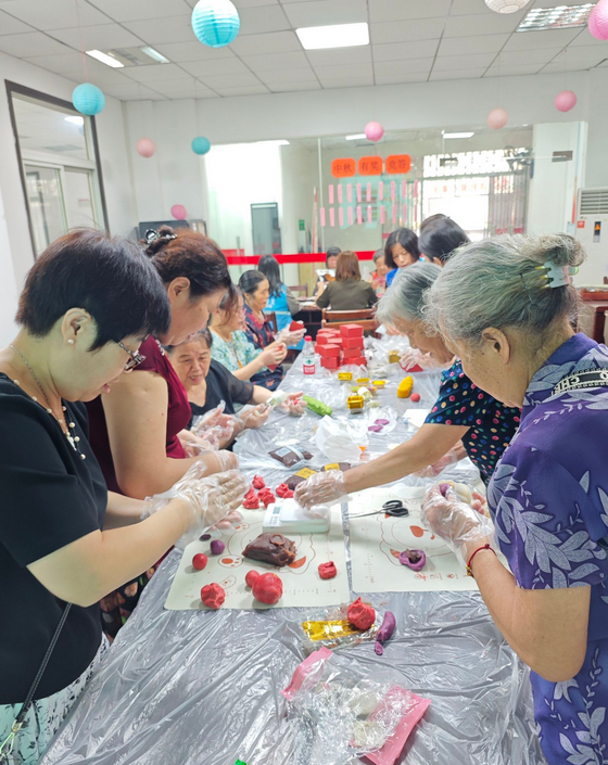 新村街道长湖地社区爱心驿站开展“月满中秋、情系团圆——我们的节日·中秋”月饼DIY活动。外卖员等新业态群体在志愿者的指导下,自己动手制作出一个个精致的冰皮月饼。