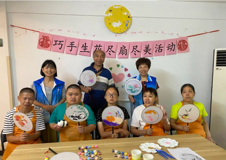 新村街道铁南社区新时代文明实践站、新村街道残疾人阳光家园联合开展“巧手生花 尽‘扇’尽美” 团扇手工制作活动。在老师的指导下,一把把独具匠心的团扇作品依次诞生,居民们手持精美团扇喜逐颜开。