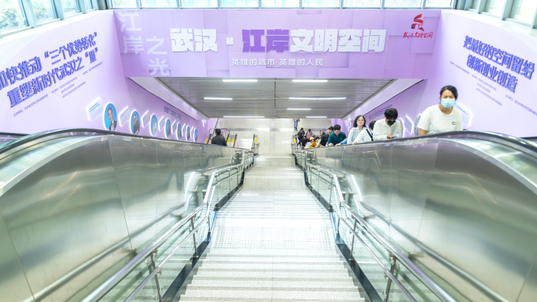 科创人物企业展示、城市蝶变图景、青少年科创作品、AI互动体验区……在地铁7号线三阳路站换乘区,作为武汉市首个在地铁打造的区级文明空间,武汉·江岸文明空间再次焕新,以“把最好的空间留给创新创业创造”为主题,让每一个来往的市民都能感受到江岸浓浓的科创氛围。