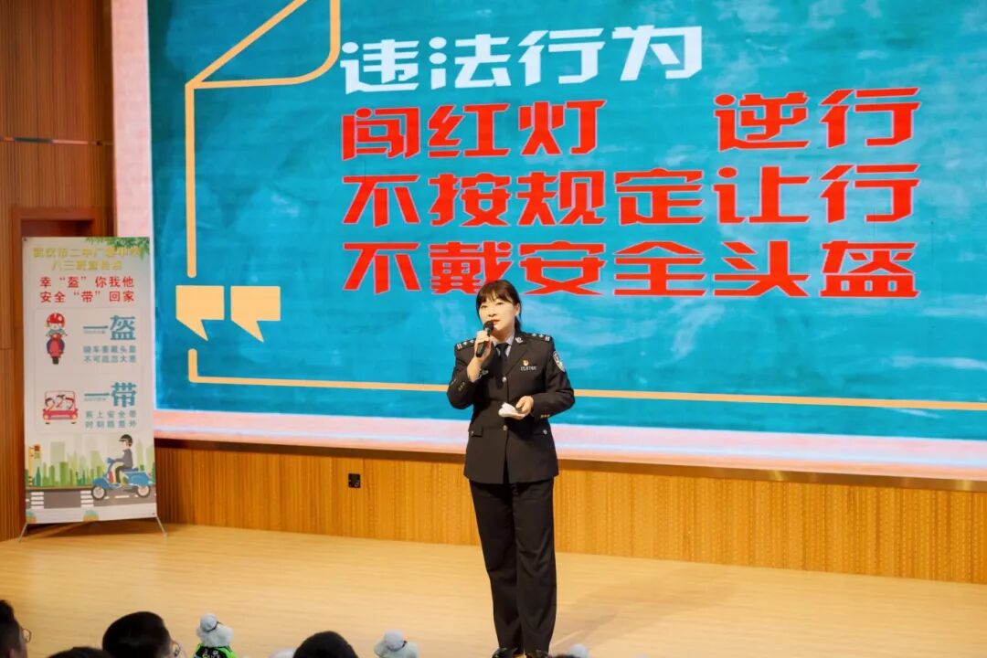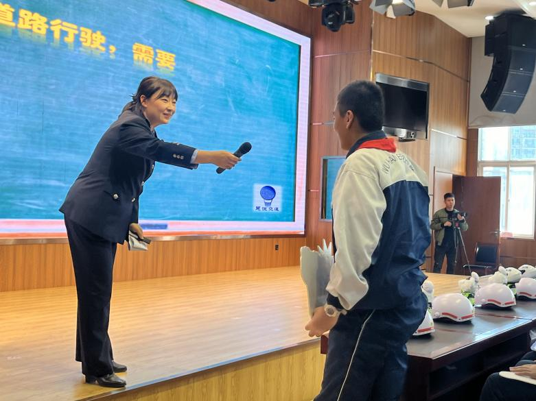 近日,“文明交通 畅行武汉——知危险 守法规 会避险 安全行‘慧说交通’守护生命安全文明交通公开课堂”在武汉市二中广雅中学举行,江岸交通大队民警张慧为师生们带来一场别开生面的交通安全宣讲,提高学生群体交通安全意识,倡导养成文明的交通行为习惯。