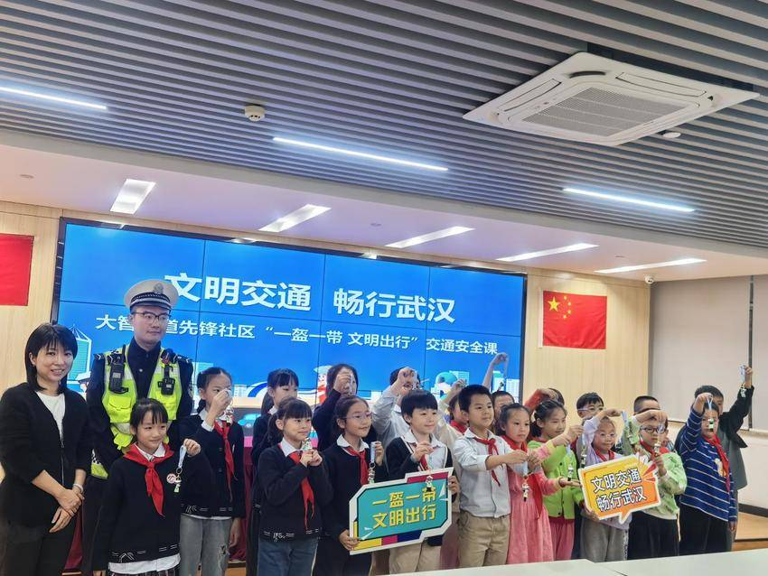 大智街道先锋社区携手大智街道人大代表、政协委员,在铭新街小学开展“一盔一带 文明出行”交通安全课活动。邀请区交通一大队交通安全志愿者,通过案例讲解、数据分析和互动问答,详细说明佩戴安全头盔、系好安全带的重要性,现场演示正确方法,进一步增强青少年交通安全意识。