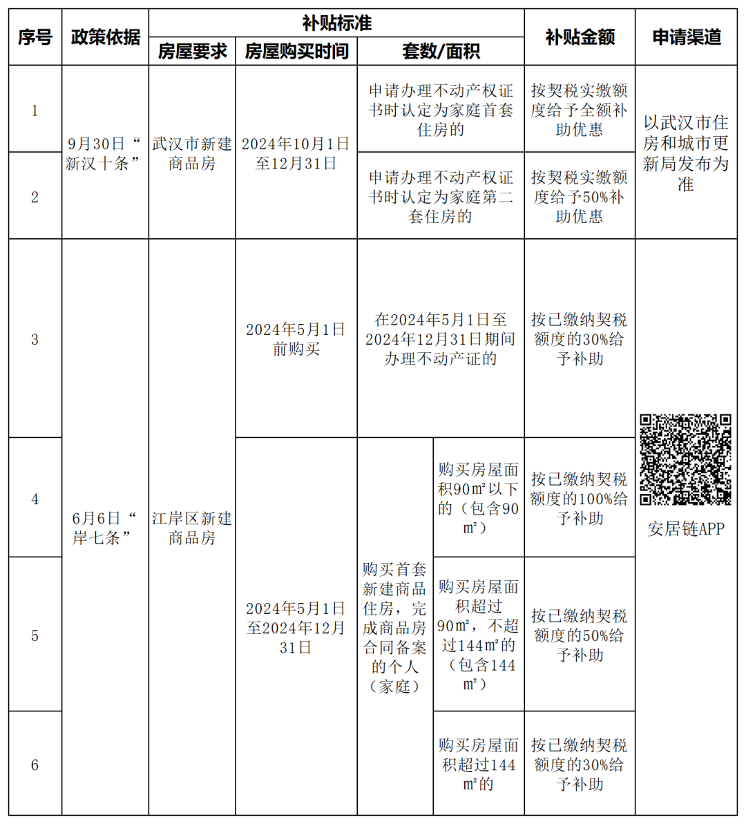 2024年9月30日,武汉市出台了《关于持续促进我市房地产市场平稳健康发展的通知》(以下简称“新汉十条”),推出了契税补贴等。