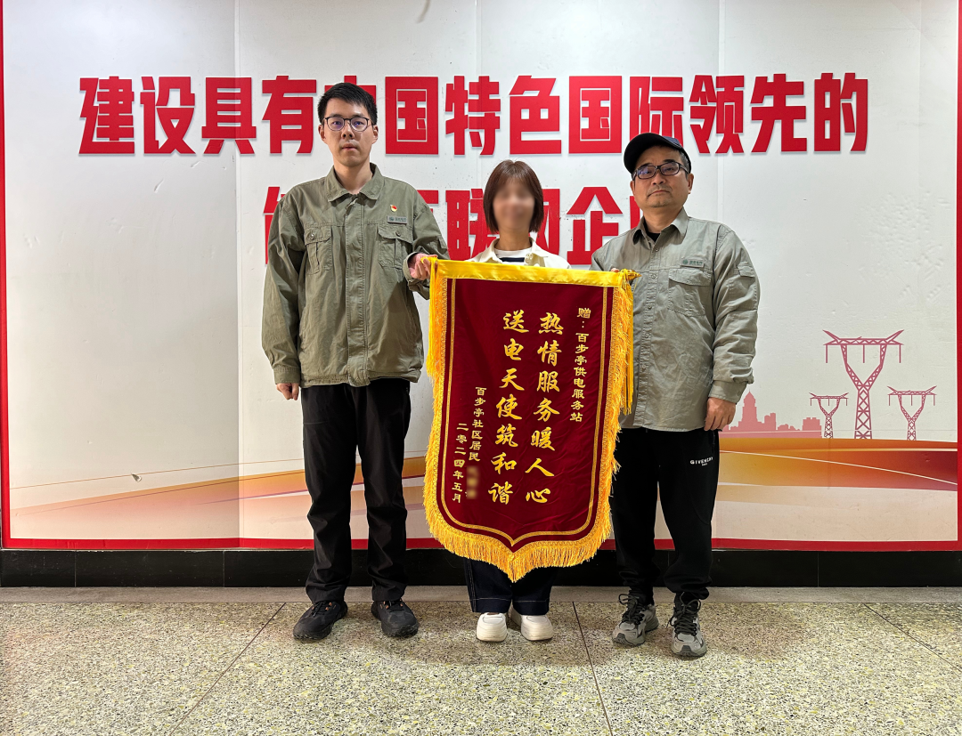 “得亏有你们,隐患消除了,我心中的大石头也放下了!”居民代女士带着一面“送电天使筑和谐 热情服务暖人心”的锦旗来到百步亭供电服务站,对服务站高效、优质的供电服务感激不已。