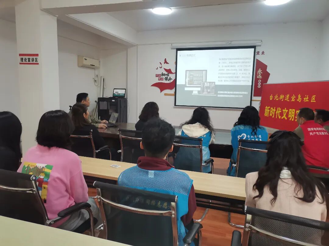台北街道宝岛社区开展用电安全科普活动。向社区居民详细讲解家庭日常防触电、触电急救等用电相关知识,提高社区居民安全用电意识。