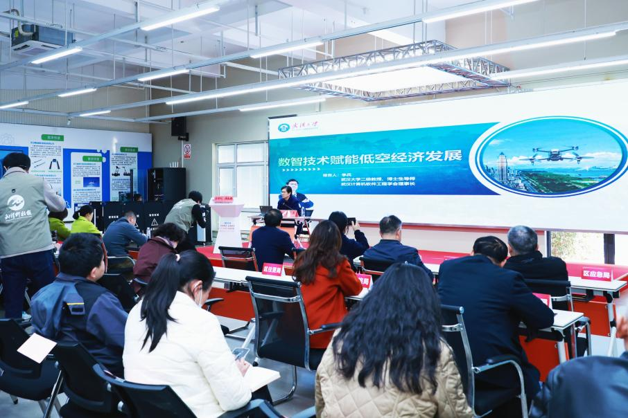区委宣传部主办的江岸区“高质量发展金岸讲坛”第十七场直播宣讲活动在岱家山科创城举办。活动以“数智技术赋能低空经济发展”为主题,邀请武汉大学计算机学院二级教授、博士生导师李兵担任主讲嘉宾,深入讲解随着人工智能、大数据、云计算等新一代技术的快速发展,武汉低空经济正迎来前所未有的发展机遇。本次活动全程网络直播,超41万人次在线收看。