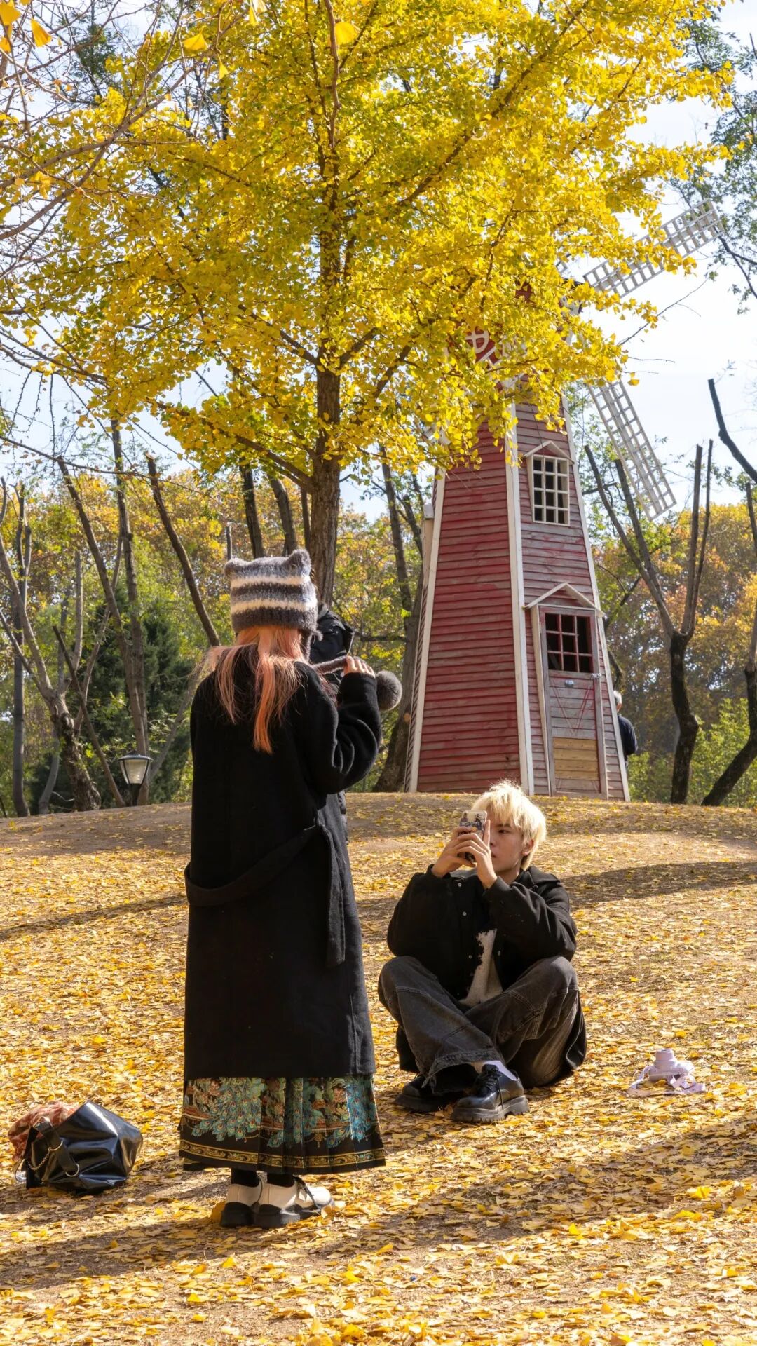 而这片金黄的银杏林,也在无声中,见证了他们平淡生活中的幸福瞬间。