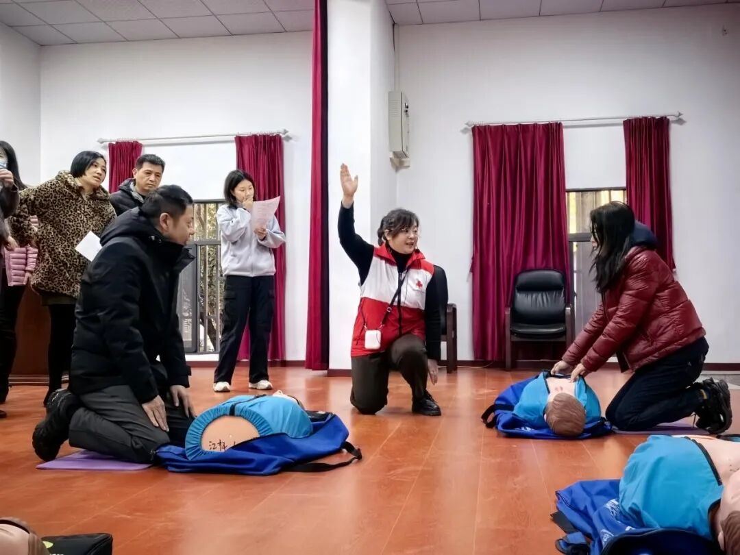 区红十字会联合区委党校讲授应急救护知识。江岸区“救在身边”红十字志愿服务队走进区委党校第43期中青年干部培训班,通过模拟演示和互动问答讲解急救知识及心肺复苏、AED使用等急救技巧,提升干部应急救护能力。