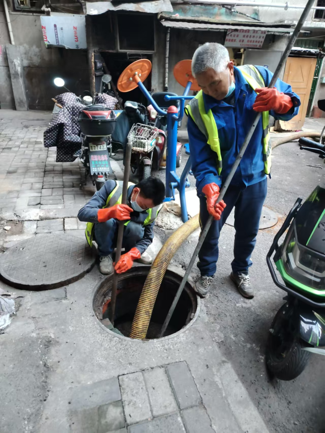 劳动街道苗栗社区及时响应居民需求。针对球场路16号下水道堵塞情况,积极协调区水务局疏通下水管道,疏涝人员通过抽吸车、高压水枪等完成清理,提升居民满意度和幸福感。