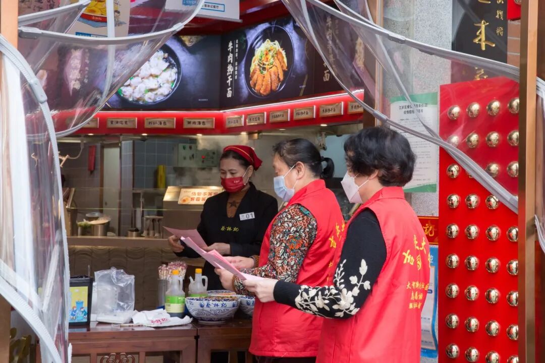 在社会力量的积极参与下,大智街道积极吸收2个自治组织、2个公益组织,组建3支志愿者队伍,发动5家文明单位共同参与外摆经营点位管理。以“吉庆大妈”为代表的志愿者队伍,成了吉庆街上独特的风景线。她们身穿红马甲,以良言善举影响着周边商户和居民群众,吸引了更多的人参与到共同管理当中来。