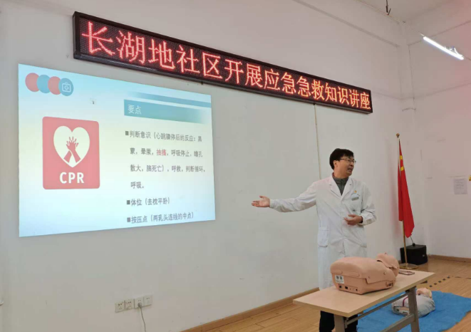 新村街道长湖地社区开展应急急救知识讲座。联合武汉市汉口医院,邀请医生现场教授心肺复苏知识与技能,进一步增强居民自救互救知识和应急能力。