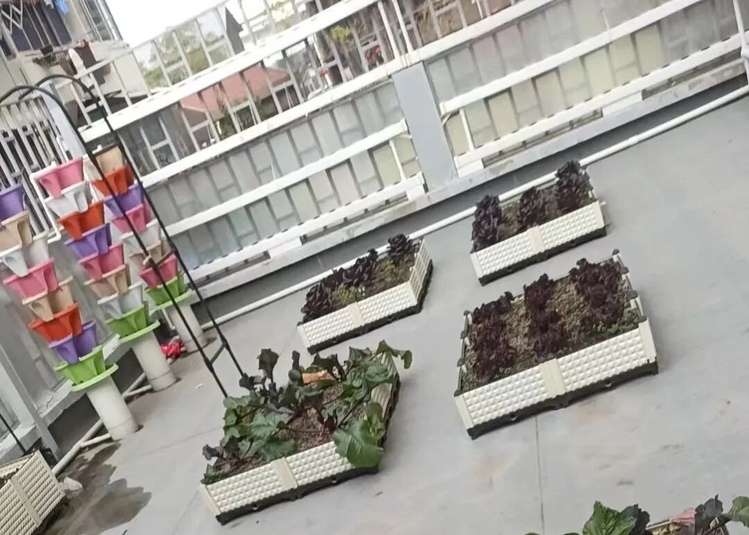 后经社区与居民们共同商议,决定将这里打造成“空中花园”,在省农科院的技术支持下,“空中花园”还多了重“一米菜园”的身份。