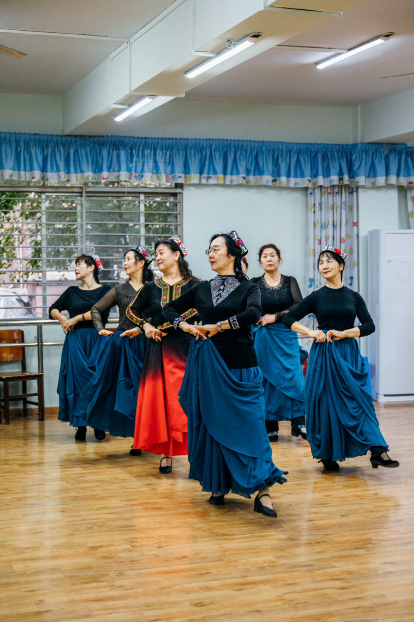 老人们聚精会神地上课,他们或挥毫泼墨、或翩翩起舞、或引吭高歌。